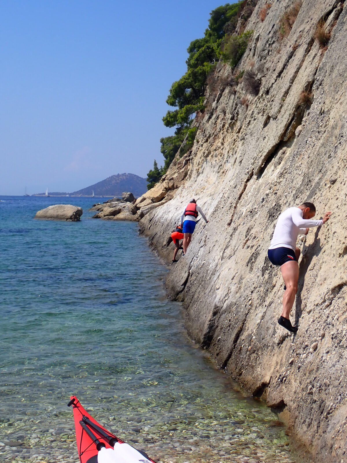 A napi 20–25 km-es távok egyenletes, tempós evezést jelentenek, amelyet pihenős esték, egyszerű helyi ételek és barátságos vendéglátás tesz teljessé. Az útvonal távoli, vadkempingezésre alkalmas öblöket és part menti tavernákat váltogat — kaland és kényelem kiegyensúlyozott kombinációja. Az expedíciót az Explorers Kayaking és a jersey-i Kayak Nomad szoros együttműködésben szervezi és vezeti. A 10 fős csoport felét angol tengerikajakosok és túravezetők alkotják. A túra a húsvéti hosszú hétvégére esik (mindössze 4 nap szabadnap szükséges), és ideális azoknak a középhaladó kajakosoknak, akik magabiztosan mozognak tengeren és gyakorlottan vernek sátrat a nomád körülmények között. Készülj hosszabb, nyíltvízi átkelésekre, partmenti portzákra, emberes távokra és a tengerikajakos expedíciós szabadság tökéletes megélésére.