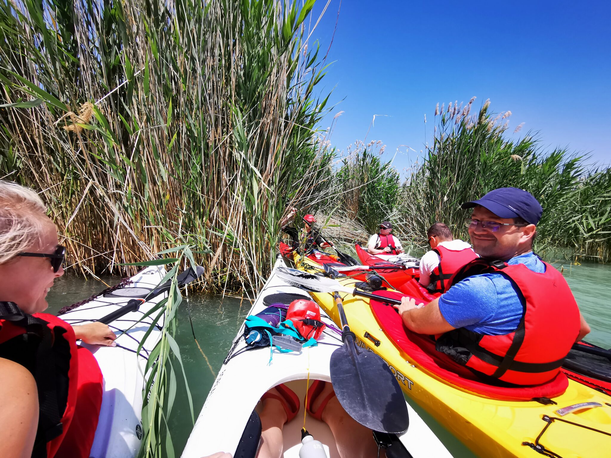 - felújított, karbantartott, menő tengeri kajakok és korszerű mellények, könnyű alu vagy karbon kajak lapát használatát
